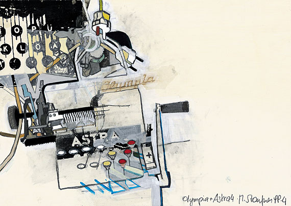 1999; Acryl, Bleistift, Collage und Fotokopie auf Papier; 41,5 x 58,5 cm.