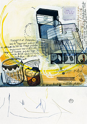 2002; Acryl, Bleistift, Farbstift und Collage