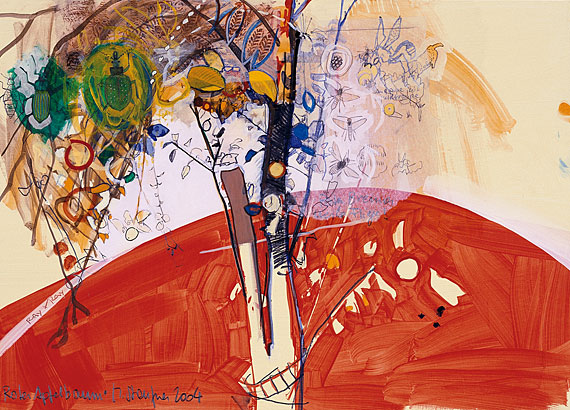 2004; Acryl, Bleistift, Farbstift und Collage auf Papier; 41,5 x 57,5 cm.
