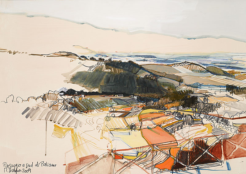2009; Acryl, Bleistift, Farbstift auf Papier, 60 x 80 cm.
