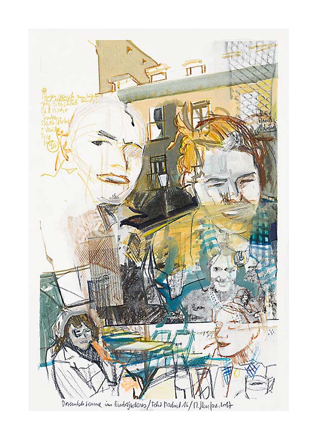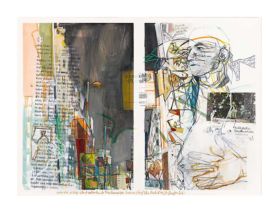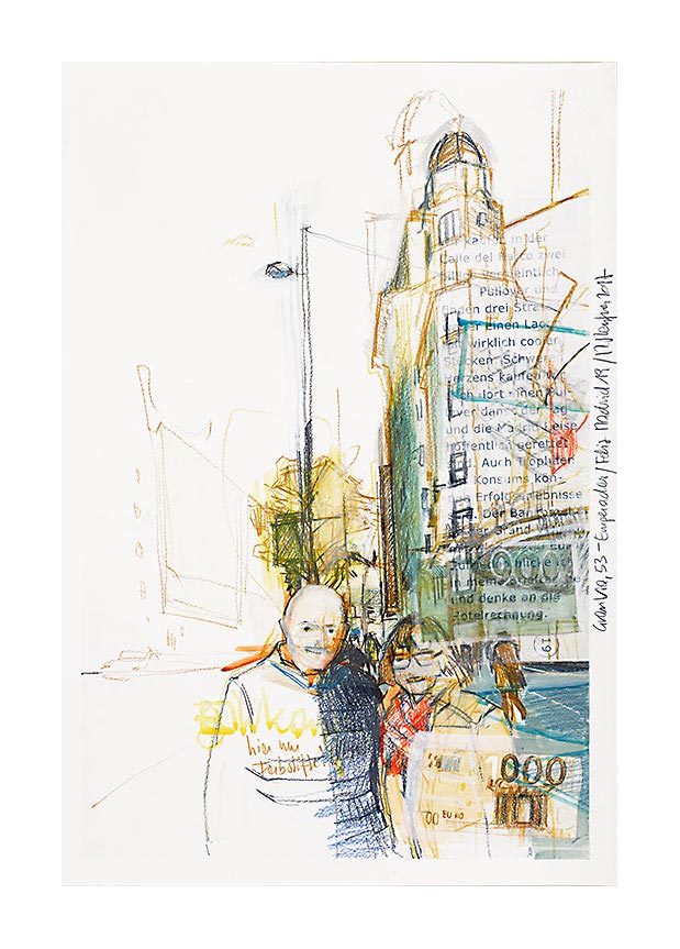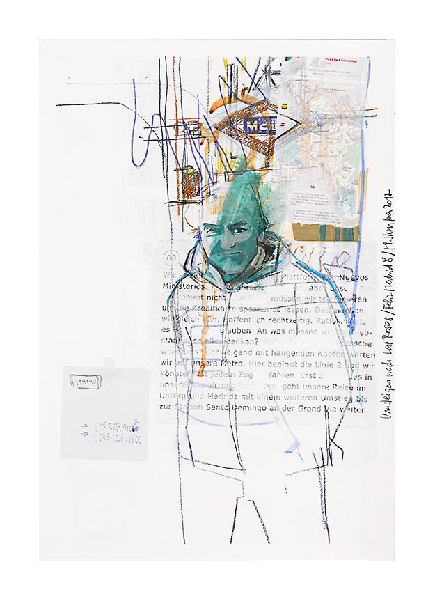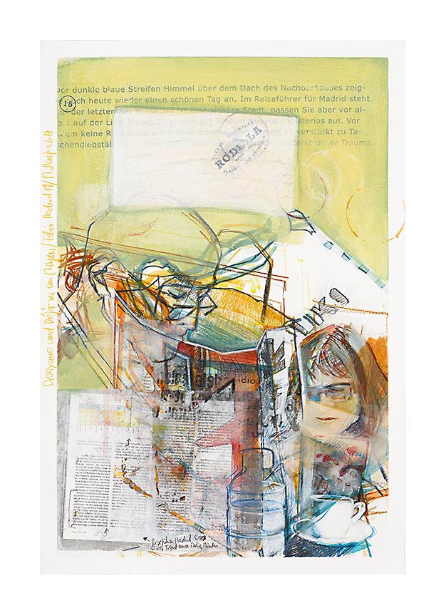 Abb. 3, 6, 7: Acryl, Farbstift, Collage; 60 x 82 cm.