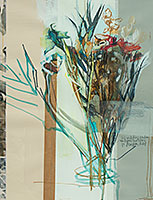 2021; Acryl, Farbstift, Bleistift, Collage, Klebestreifen, Aquarellkarton; 46,5 x 23,6 cm |