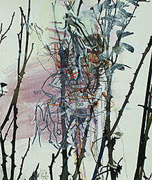 2021; Acryl, Farbstift, Collage, Klebestreifen, Aquarellkarton; 36 x 52,5 cm |